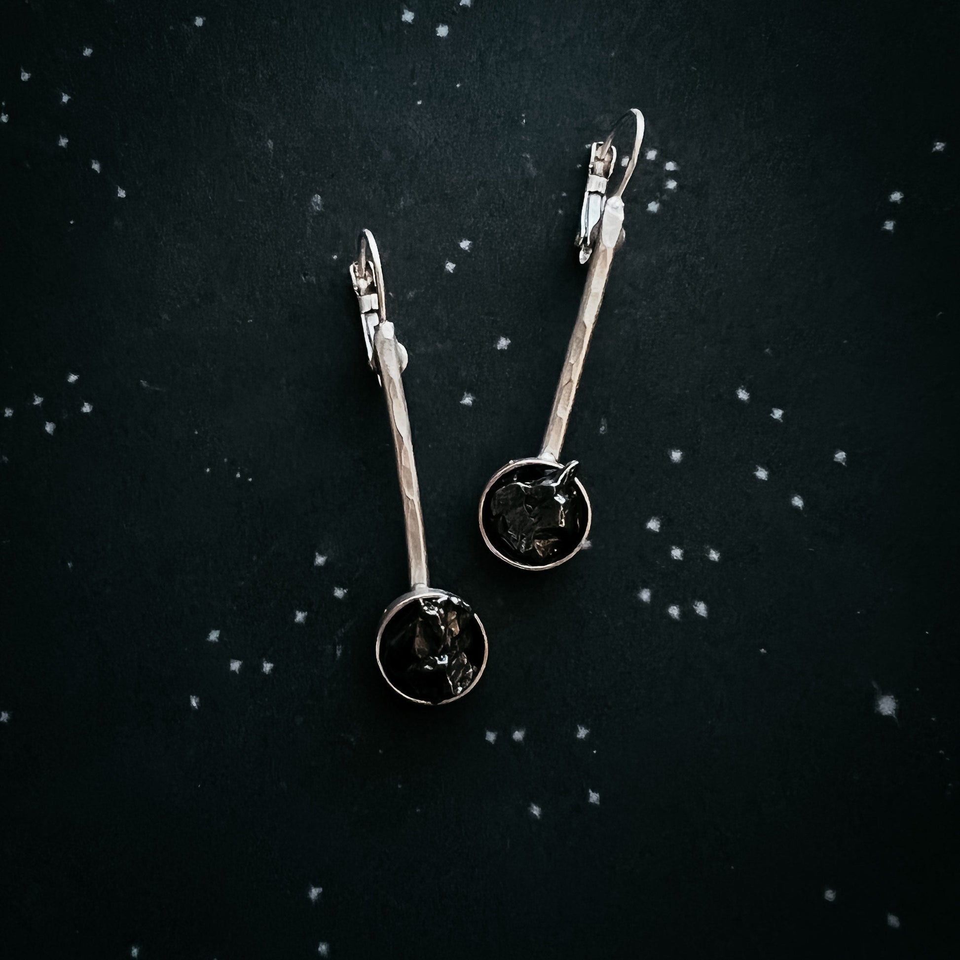 Get ready to bring out your inner astronaut, because you’re about to channel a bit of the universe with this one-of-a-kind pair of meteorite drop earrings! These simple and stunning matte silver earrings feature raw, authentic Campo del Cielo meteorite bezels set against an elegant round design. When you need a subtle yet symbolic reminder that we are all made up of star stuff, don these dazzling drops and bring a bit of the cosmos along with you! Complete with lever backs for extra flair and security, these are an ideal gift for the proactive scientist or stargazing aficionado in your life. Don’t let their celestial beauty drift away - grab a pair before they become galaxies away.