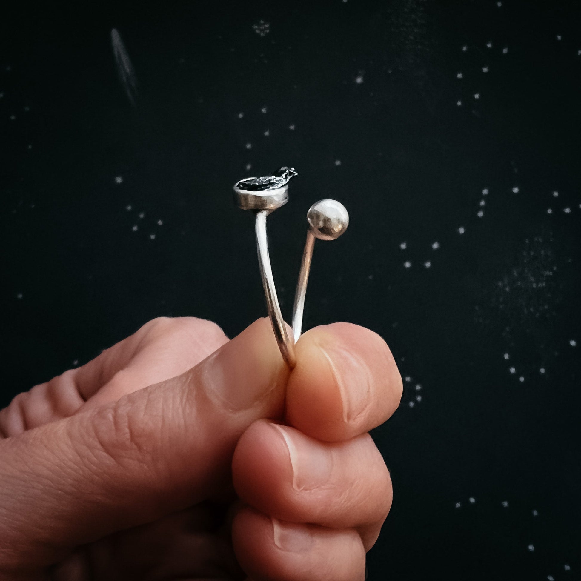 Are you done with your everyday jewelry that’s been seen and done thousands of times? It’s time to blast off with something out of this world! Introducing our Stellar Swirl Ring with Genuine Meteorite. Take the much-trodden jewelry styles and give them a cosmic twist! A beautiful chunk of meteorite set in an oval bezel on a thin adjustable wrap band fastened by a silver bead - this is just what you need for an eye-catching twist to any look. Don't just keep your outfits grounded anymore - explore the unknown and make an out-of-this-world fashion statement. So, if you want something different, unique, and mesmerizingly planetary, check out our ring today - it's a great gift for the scientist or stargazer in your life!